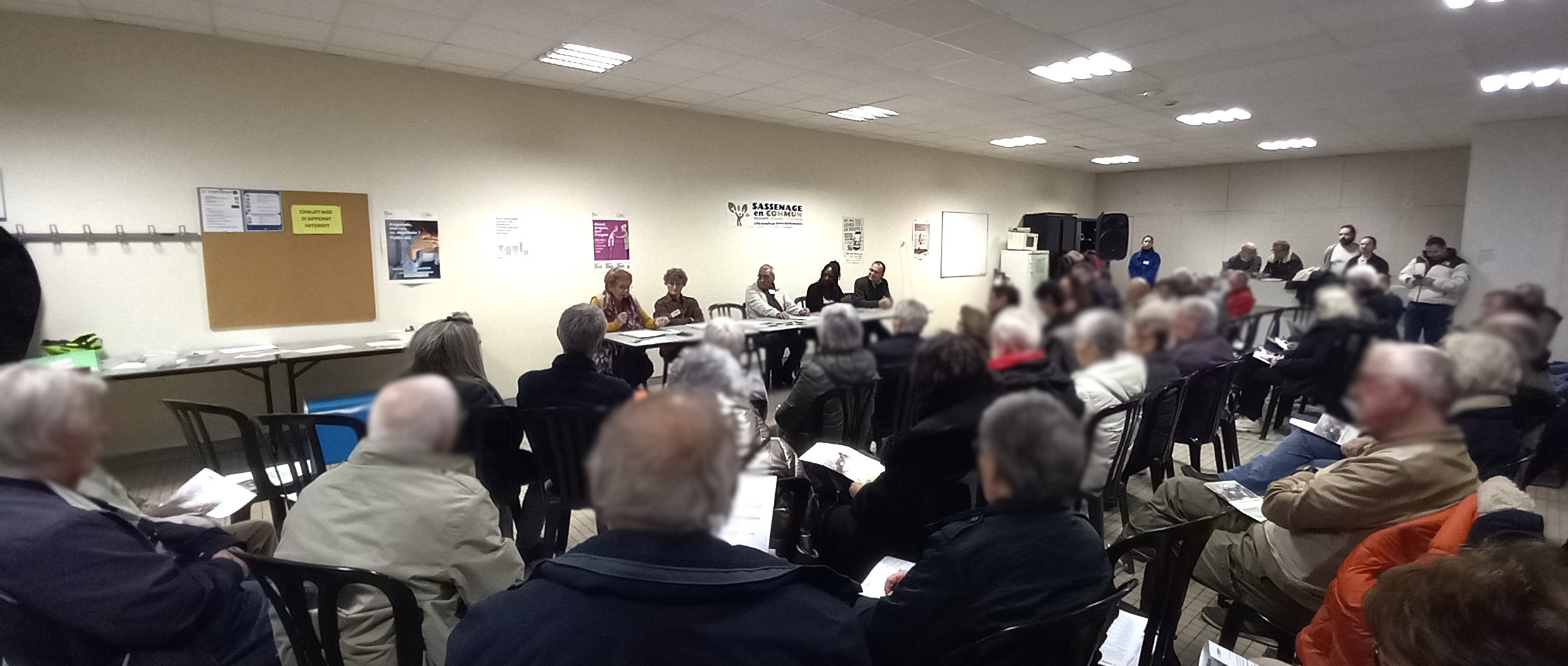 La suite de la soirée a été consacrée au CCAS et au souhait de Sassenage en commun de le réintégrer au centre de notre commune. Après un bref rappel des faits de Farid Benzakour, différentes possibilités ont été évoquées pour atteindre cet objectif.